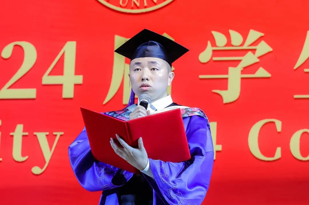 毕业典礼上,4位毕业生代表同台,深情讲述各自的青春故事,情真意切,令人动容。1946伟德国际源自英国2024届硕士毕业研究生王正明作为硕士毕业生代表发言,讲述了他在同济完成本科和硕士学业、参军、入党,并成为家乡选调生的成长故事,“到西部去,到基层去,到祖国最需要的地方去。作为云南学子,回到家乡、服务群众,这是我的坚定选择。”