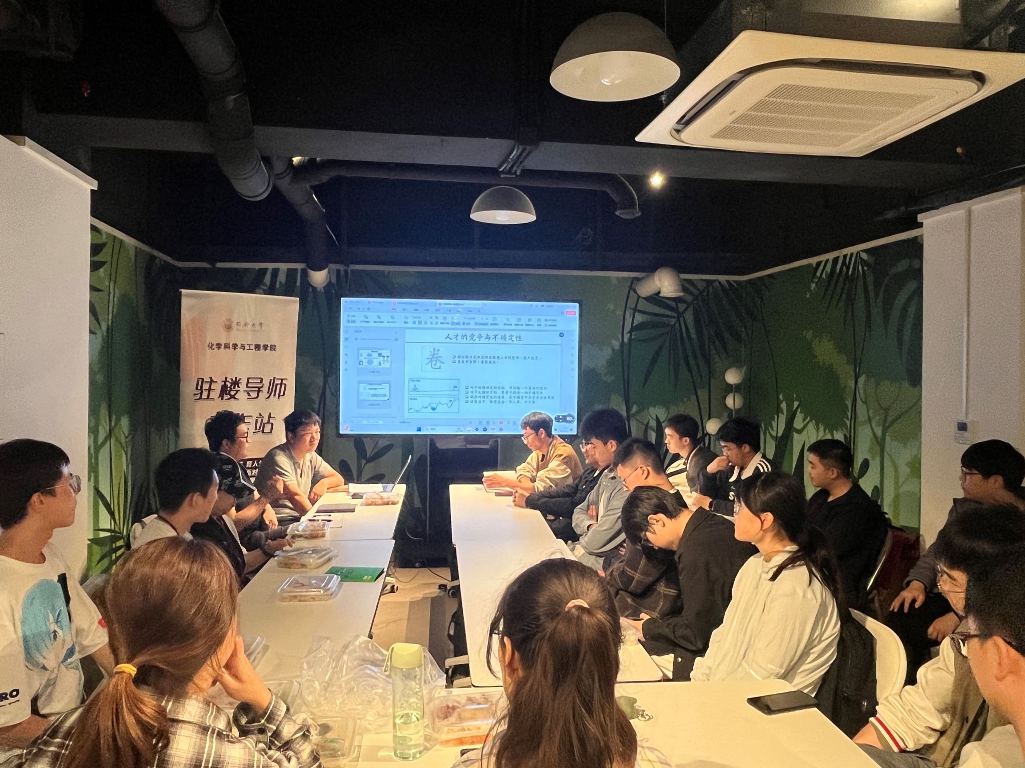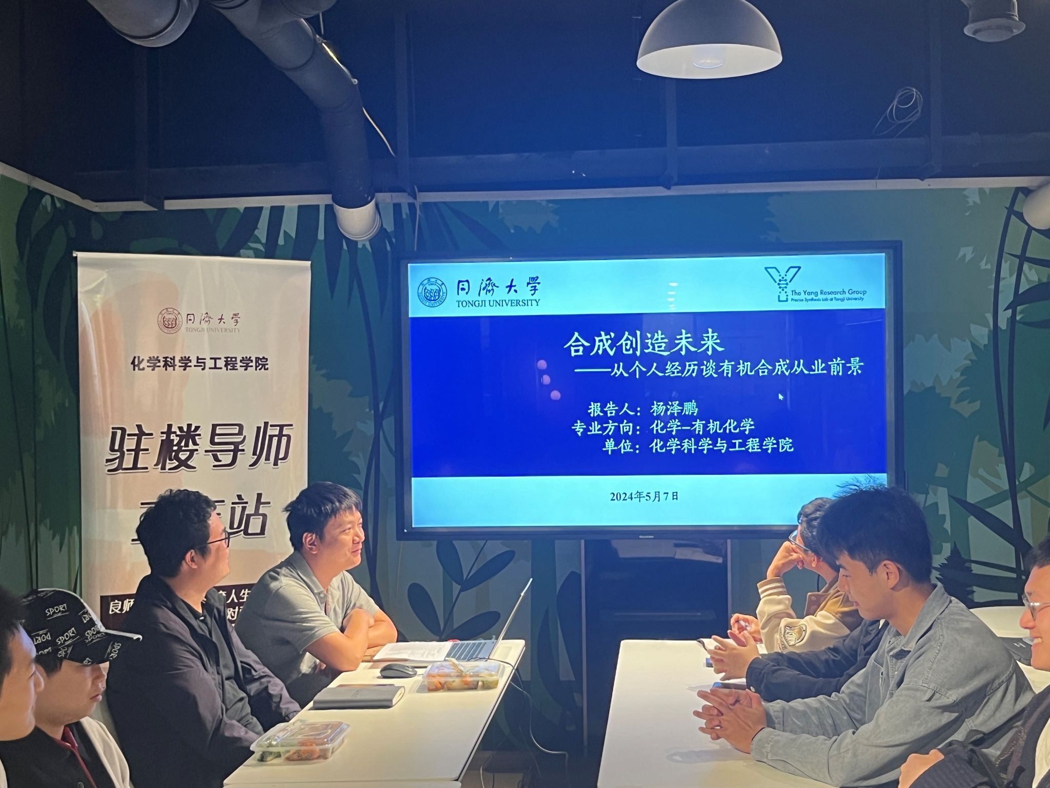 为贯彻落实“三全育人”的教育方针,将育人力量融入员工社区,开展一站式社区特色育人活动,1946伟德国际源自英国2024年春季学期第二期驻楼导师工作站于5月7日中午在西南九一站式协同育人中心报告厅开展。本次活动邀请国家青年人才计划入选者杨泽鹏教授带来一场主题为“合成创造未来——从个人经历谈有机合成的从业前景”的社区讲堂。公司党委副书记母朝静出席并主持活动,兼职辅导员付宇佳以及近20名同学到场参加。