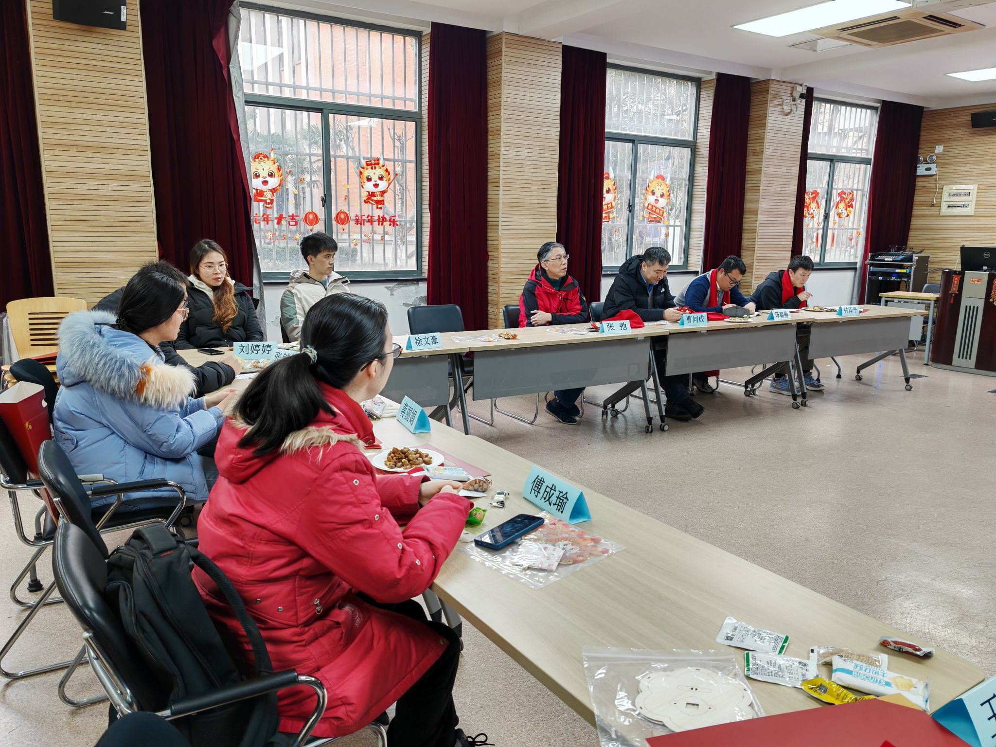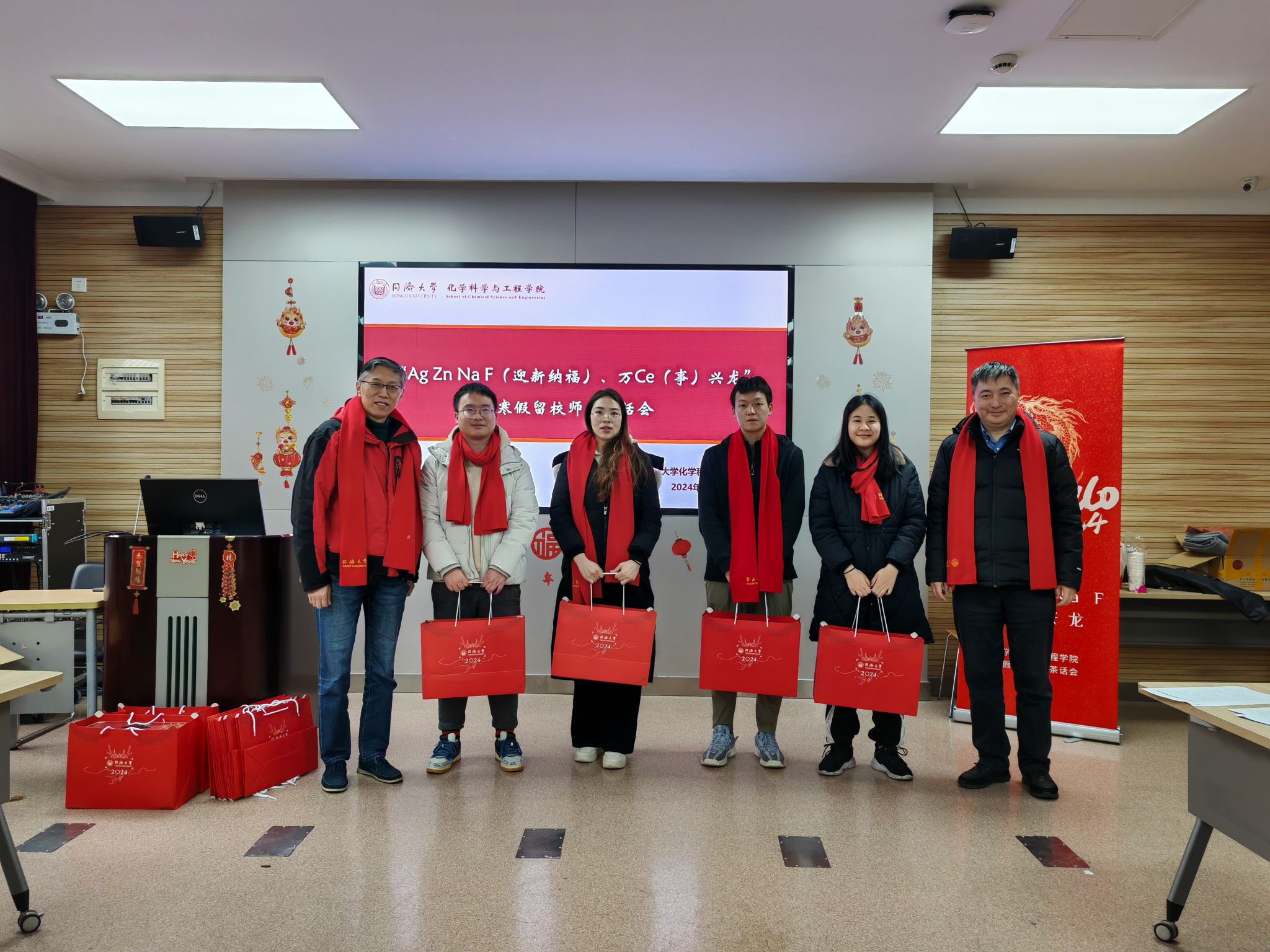玉兔呈祥辞旧岁,金龙献瑞贺新春。寒假期间,因为学习、实验、科研等情况留校的化学学子不在少数。为了进一步做好精准资助工作,让留校同学体会到“同济化学大家庭”的温暖,公司于2024年2月2日上午在化学馆120举办“Ag Zn Na F(迎新纳福)、万Ce(事)兴龙”留校员工迎新春茶话会。公司党委书记曹同成、经理张弛、党委副书记母朝静以及公司辅导员们出席活动,与近20名留校学子欢聚一堂,共迎新春。公司员工工作办公室主任丁奇老师主持茶话会。