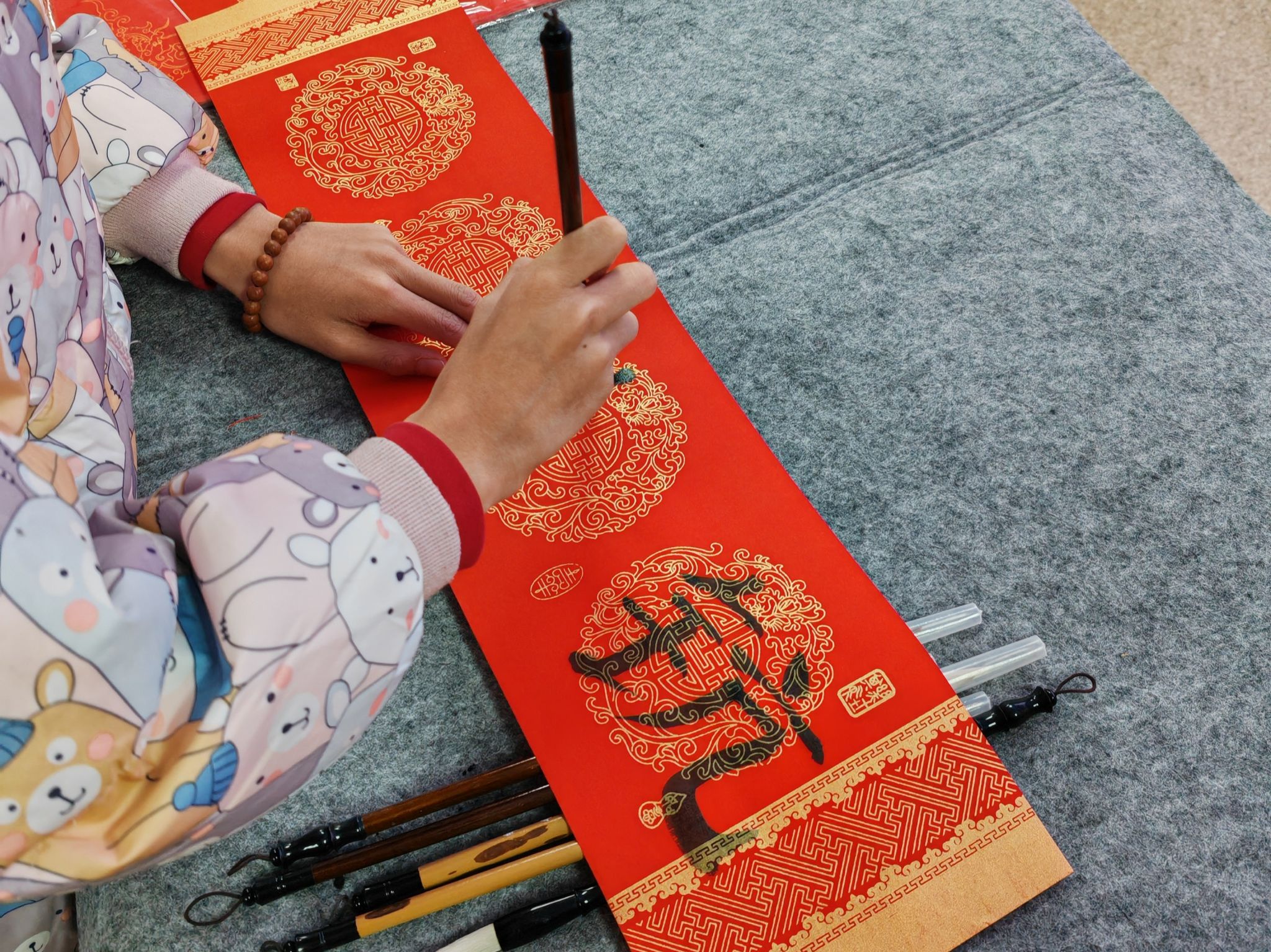 曹同成、张弛、母朝静等老师们分别为留校同学送上公司、公司精心准备的大礼包。沉甸甸的礼包,沉甸甸的爱,有初次寒假留校的同学感慨地说:“这是我在同济这么多年来第一次寒假期间留校,没想到公司、公司准备了这么多礼包,还有院领导们逐个关心慰问,让我十分感动!我一定会好好规划好寒假,不荒废时光。”而后,留校员工和到场的老师们通过制作灯笼,用化学元素写春联的方式展示化学人独有的浪漫和迎新春仪式。