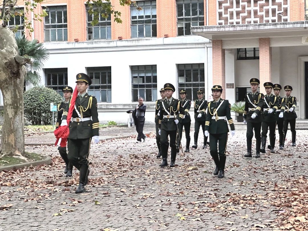 清晨7点整,主持人陈思睿宣布“砥砺初心担使命,踔厉奋发勇作为”主题升旗仪式正式开始。众人肃立,国旗护卫队的队员们迈着整齐的步伐,护送国旗至升旗台。“起来,不愿做奴隶的人们......”嘹亮的国歌声响起,师生们怀揣对祖国无限的热爱,注视着冉冉升起的五星红旗。国旗在微风中轻舞,仿佛也能感知到师生们心中的自豪感和崇敬之情。
