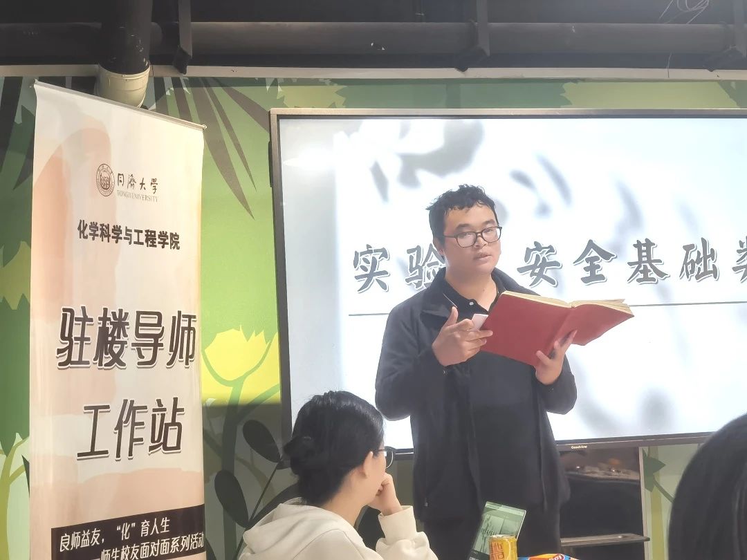 活动伊始,母老师对各位同学的到来表示欢迎,并做了三方面的介绍。首先,他回顾了“驻楼导师工作站”从2020年秋季学期至今的建设情况,从“课题组思政进社区”到“专业志趣引领”,再到现如今的“学业帮扶在社区”,导师讲解范围十分广泛、也覆盖了多个公司的同学。其次,他讲到公司近几年毕业去向落实率情况,提醒同学们在校期间抓住学业重点,提升自己的能力;引导同学们树立正确的就业观,早日考虑好自己未来的去向并为之做出努力。最后,他分析并强调了实验基础技能在化学学习中的重要性,揭示到有时候他山之石,也可攻玉,遇到问题除了救助于己之外还可以求助于朋辈的力量。