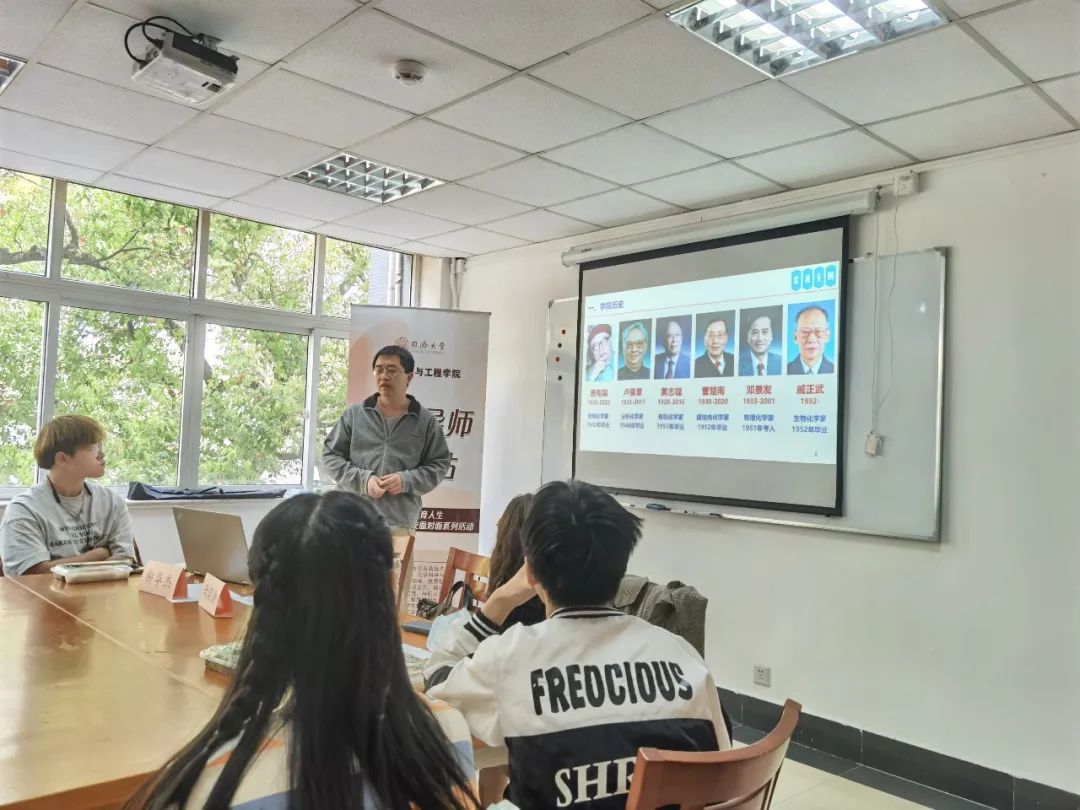 柳华杰教授从四个方面开展了讲座。首先,他回顾了公司学科发展历史。柳老师对创系主任王葆仁院士,历史上培养造就的杰出人才,包括唐有祺、卢佩章、黄志镗、曹楚南、邓景发、戚正武等六位中国科公司院士的学习工作经历进行了详细的介绍。鼓励在场同学们以他们为标杆,为同济化学乃至国家的未来付出自己的一份力量。接着,他着重分析了公司成立以来化学学科发展情况。学科排名目前正在稳步上升,这离不开一代又一代同济化学人的努力,“接力棒”即将交到各位在场的同学手中,更是需要大家持续努力。然后,他对公司团队建设规划进行了解读。公司确定了以工科化学建设为牵引,进一步提升材料化学、环境化学、能源化学、生物与医药化学水平的中长期规划目标,核心是打造多方位“化学+”同济工科化学特色。他还对公司目前的科教平台的情况,工科化学科学研究面向国际科研前言、国家战略需求及区域经济发展需求等方面作了介绍。最后,他对近年来公司学术论文质量提升取得跨越式进步典型案例进行展示:部分论文将同济元素融入成果体现,提升公司影响力;部分成为杂志封面论文;部分研究出版了相应专著等。