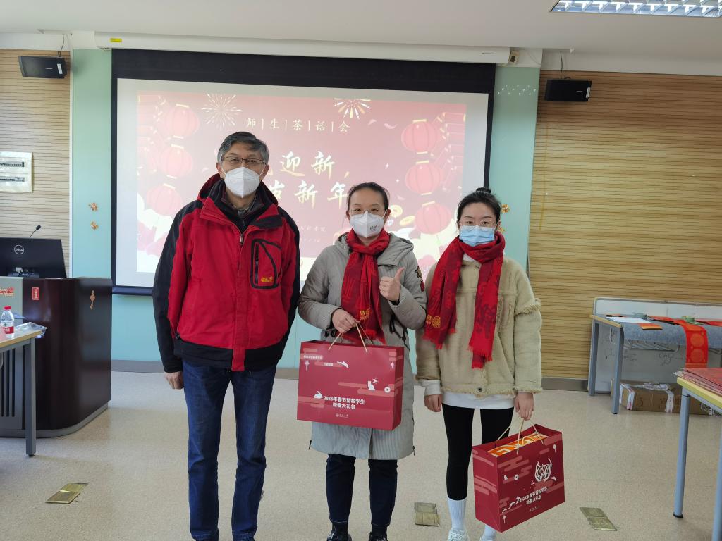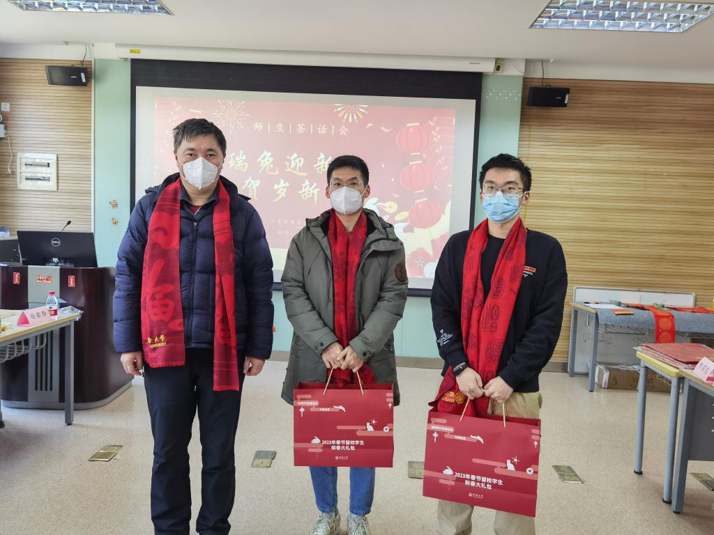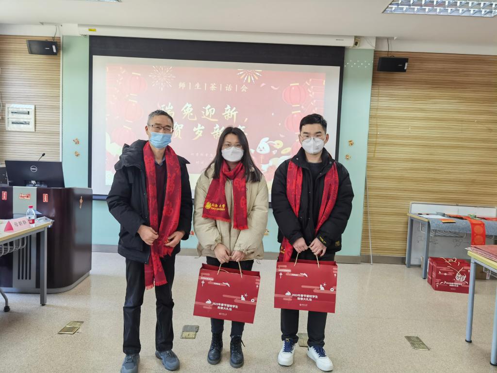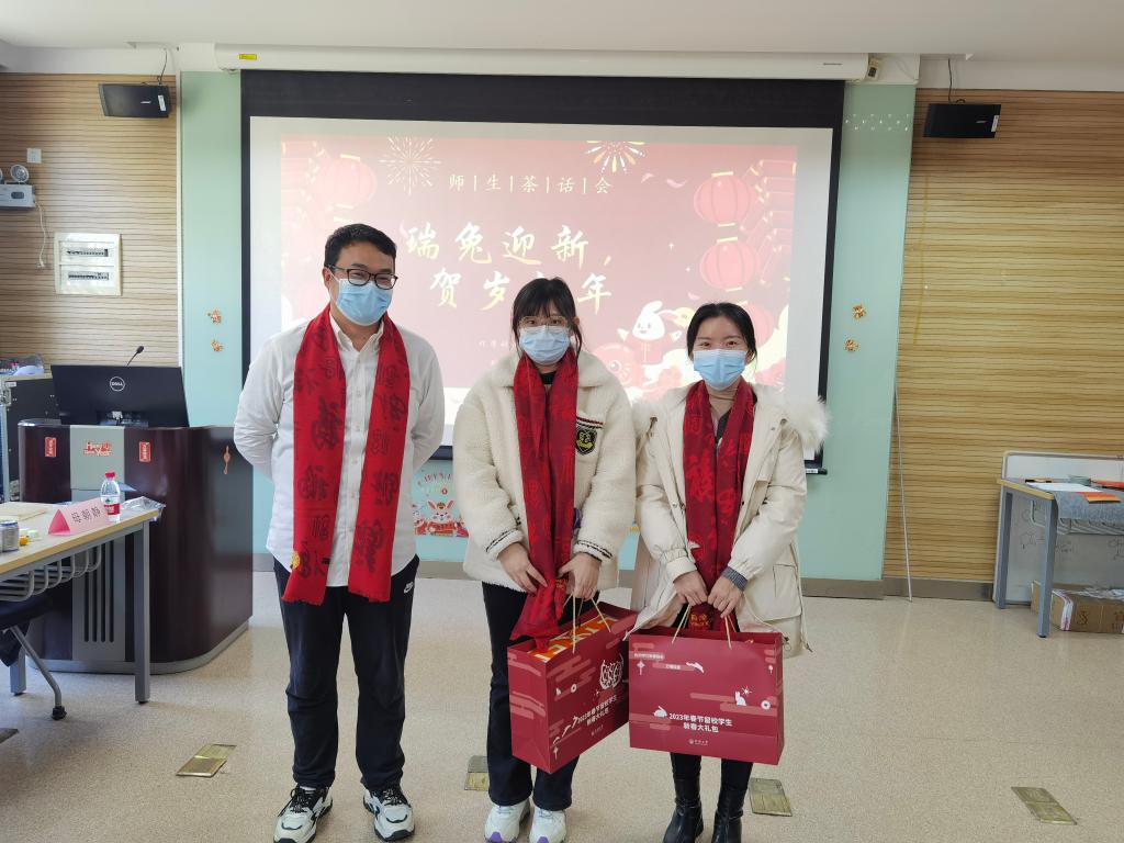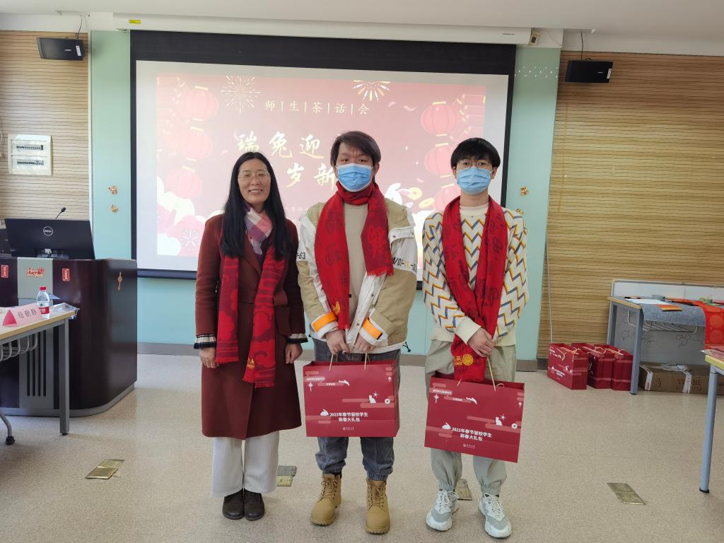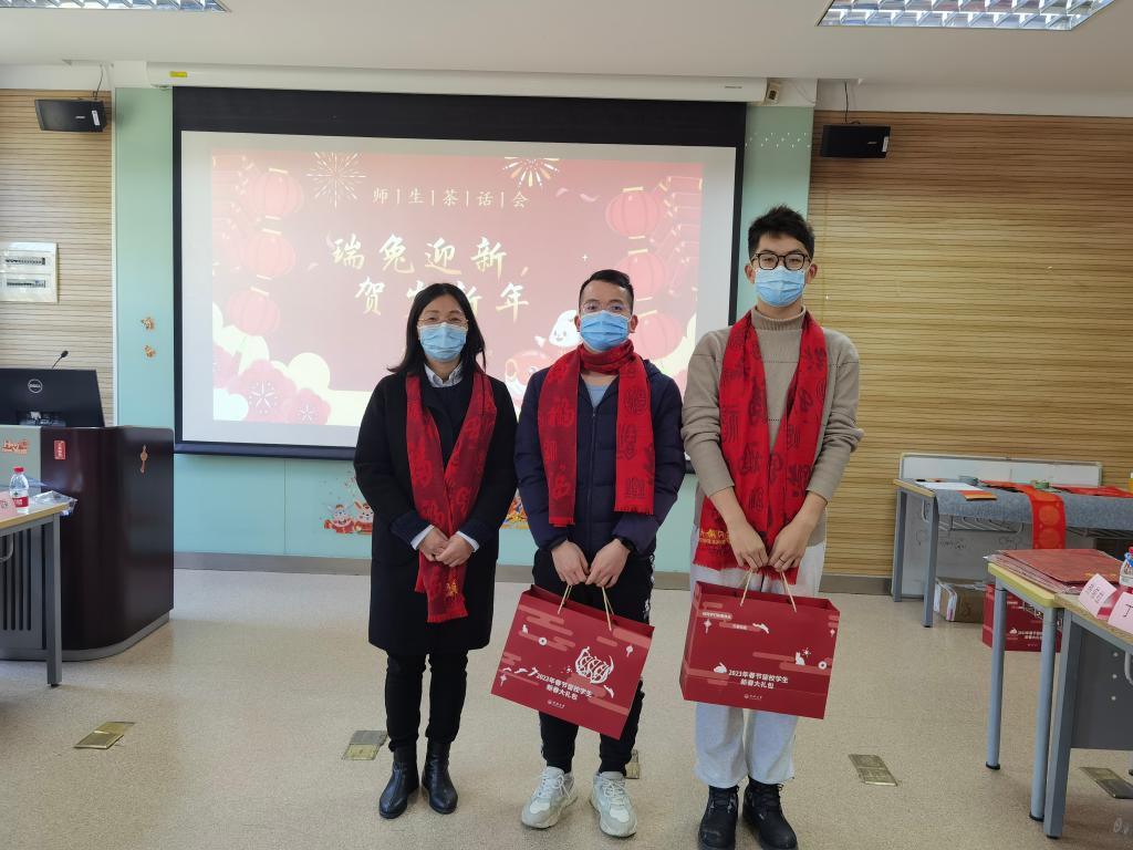 虎带祥云去,兔铺锦绣来。寒假将至,公司有部分员工因学习、科研、实验等情况留校过年。为深入学习贯彻落实党的二十大精神,进一步做好精准资助工作,让留校同学体会到“同济大家庭”的温暖,公司于2023年1月10日下午在化学馆120举办“瑞兔迎新,贺岁新年”留校员工迎新春茶话会。公司学研工部副部长王小莉、公司党委书记曹同成、经理张弛、党委副书记赵红颖、副经理刘梅川、教师代表朱仲良、庄璐以及公司辅导员们出席活动,与20余名留校学子欢聚一堂,共迎新春。公司党委副书记母朝静主持茶话会并介绍了寒假期间校院活动安排及有关安全提示。