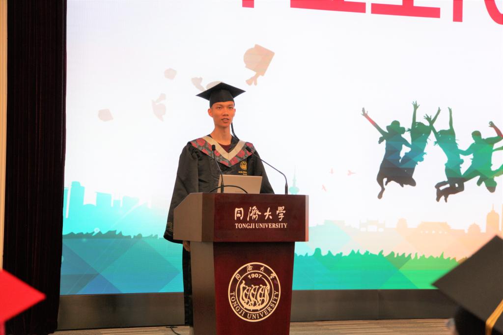 此后,博士毕业生代表滕雪、硕士毕业生肖凡、本科毕业生吴志铭作为员工代表发言。他们分享了自己在同济、在同济化学学习、生活所思所想。表达了对母校和公司悉心培养、搭建起追求卓越的阶梯的感谢;对所有公司老师在学业和生活上的关心与帮助、对同学与好友们陪伴与鼓励的感谢。