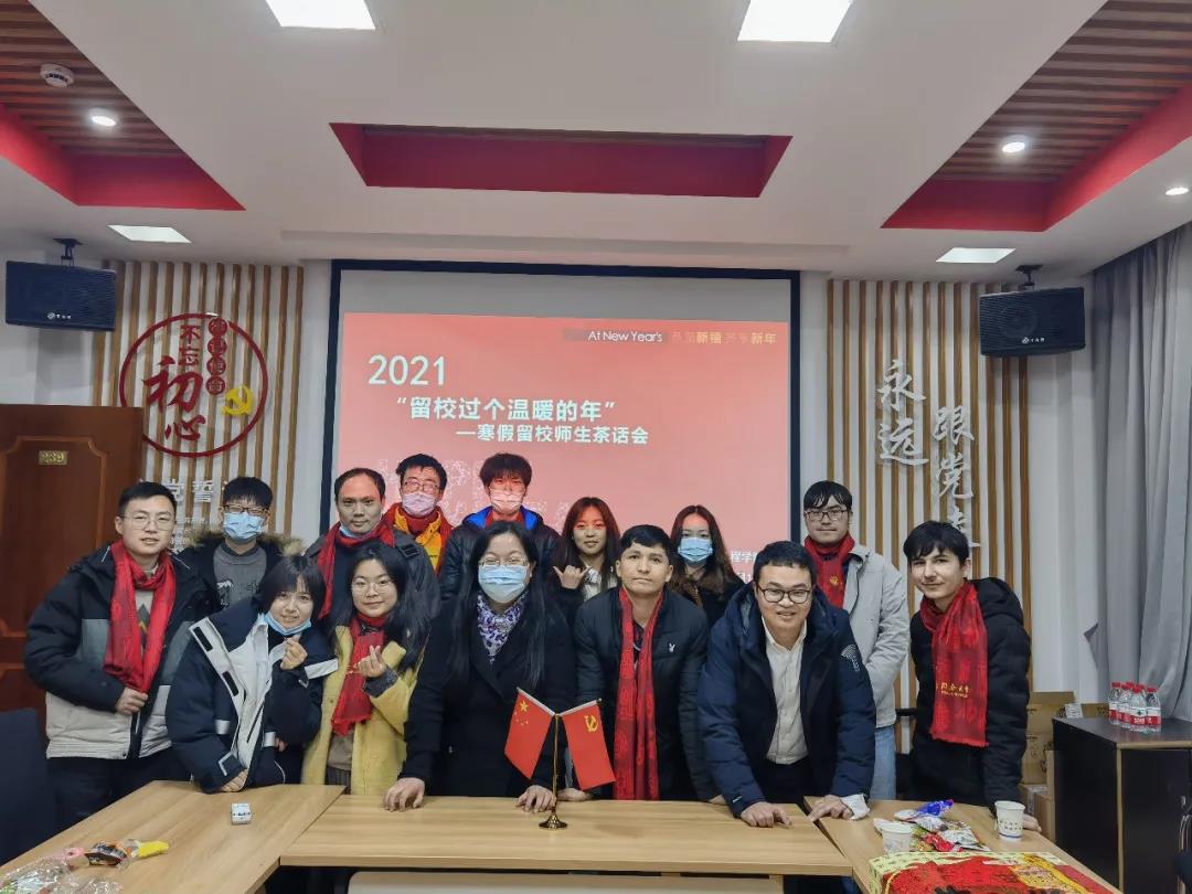 银鼠笑辞旧年去,金牛乐迎新春来。2月1日下午,“留校过个温暖的年”寒假留校师生新春座谈会在化学馆120和239同步举行。公司经理张弛、党委书记杨晓杰、副书记兼纪委书记王启刚、副经理刘明贤以及学工办老师与公司留校本科生、研究生、少数民族员工近50人欢聚一堂,共贺新春。公司党委副书记母朝静主持座谈会并介绍留校员工安全防疫工作要求。