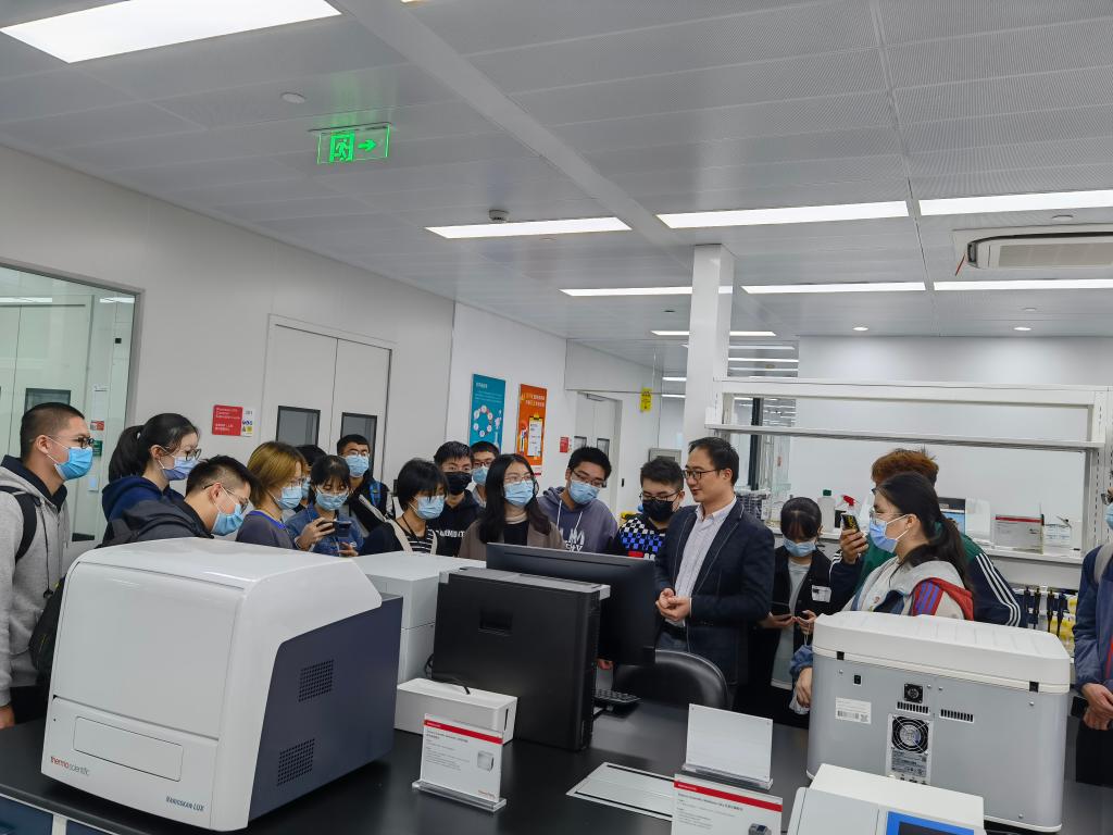 在公司各部门工作人员的带领下,通过参观公司研发的仪器设备,师生们对赛默飞世尔的工作内容和公司所生产的一些仪器有了一定的了解。在和不同部门的工作人员的互动交流中,师生们对赛默飞所生产的细胞分析仪、DNA检测仪器以及一些色谱仪、光谱仪等的作用和区别有了初步的了解。另外,工作人员告诉我们,这些仪器在新冠病毒的研究中也起到了重要作用。在医院对DNA进行检测方面或者在食品行业以及生活的方方面面,都可以通过这些仪器实现对微观层次的分析和表征,并且仪器的分析效率在经过不断的研究后,也在不断突破。