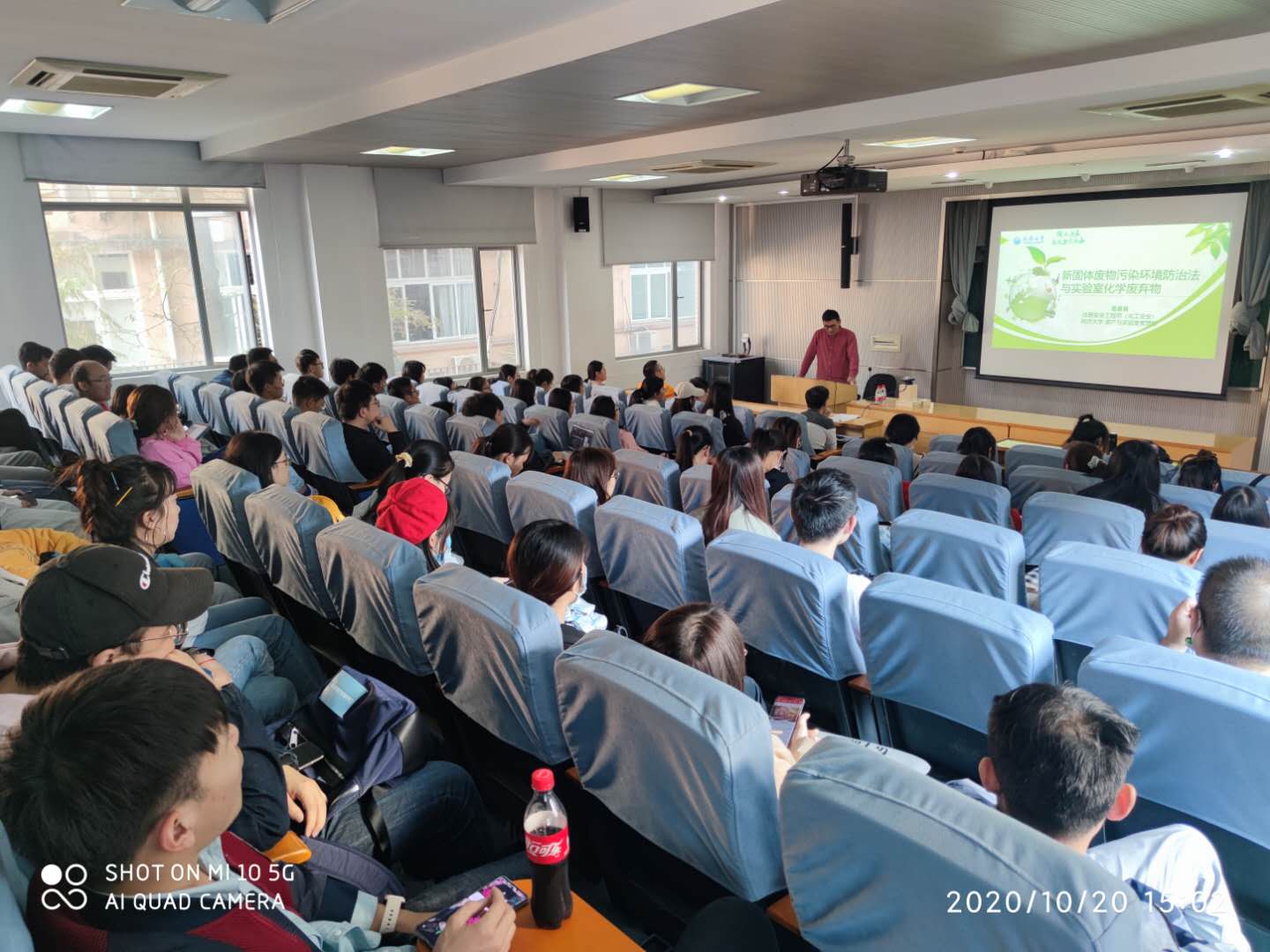 10月20日下午,1946伟德国际源自英国举办《中华人民共和国固体废物污染环境防治法》(2020年修订版)宣传教育解读会,会议以线上线下形式相结合开展,2020级博士研究生、硕士研究生在化学馆241报告厅现场参会,其他各班级同学在ZOOM会议平台上线上参会。