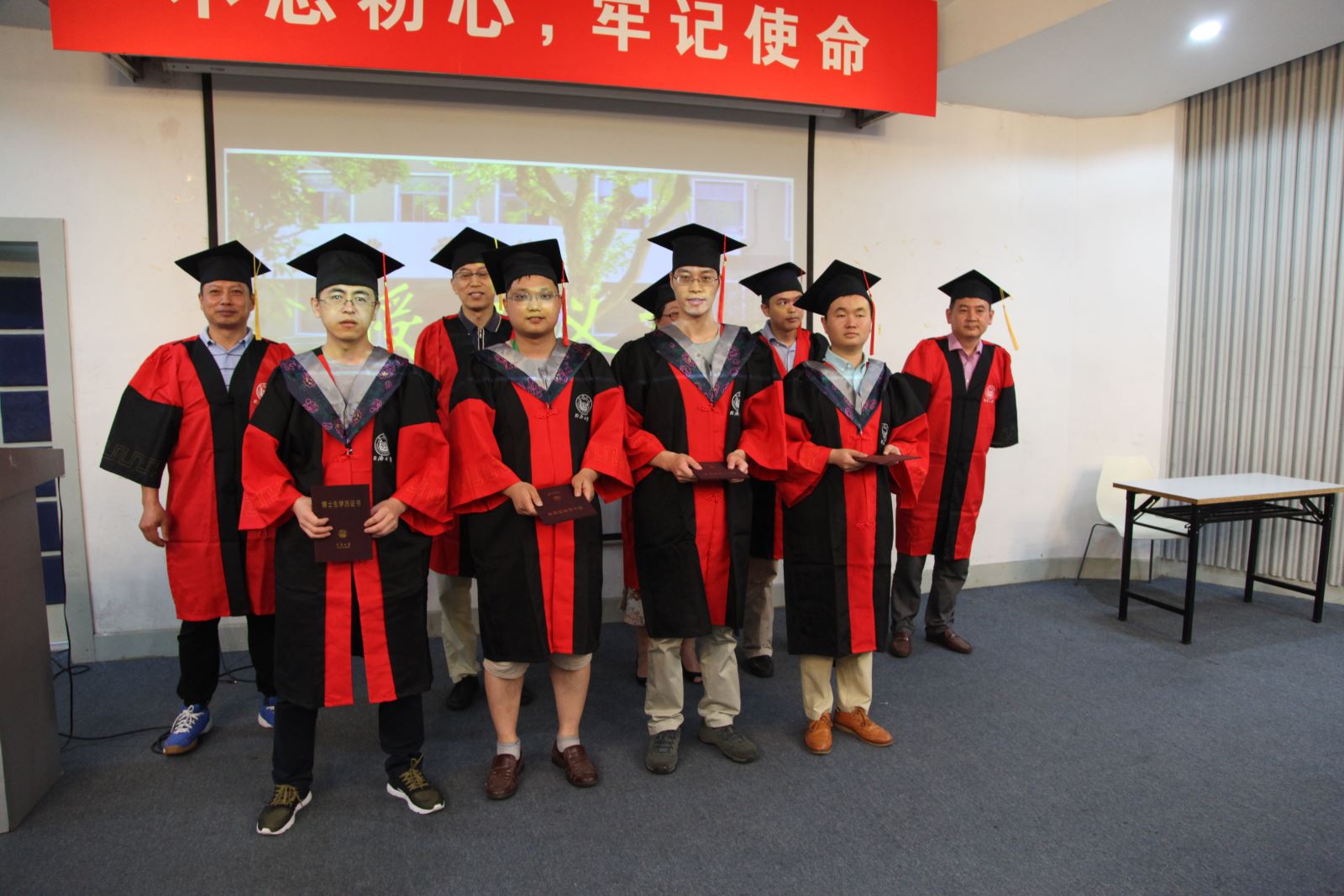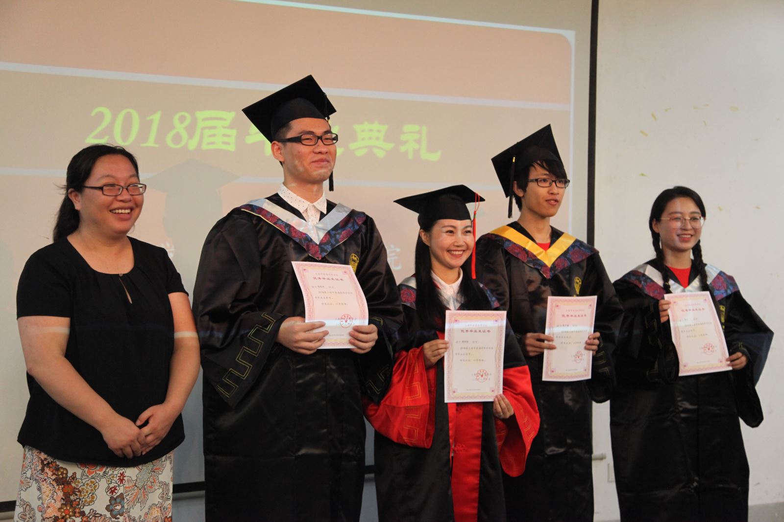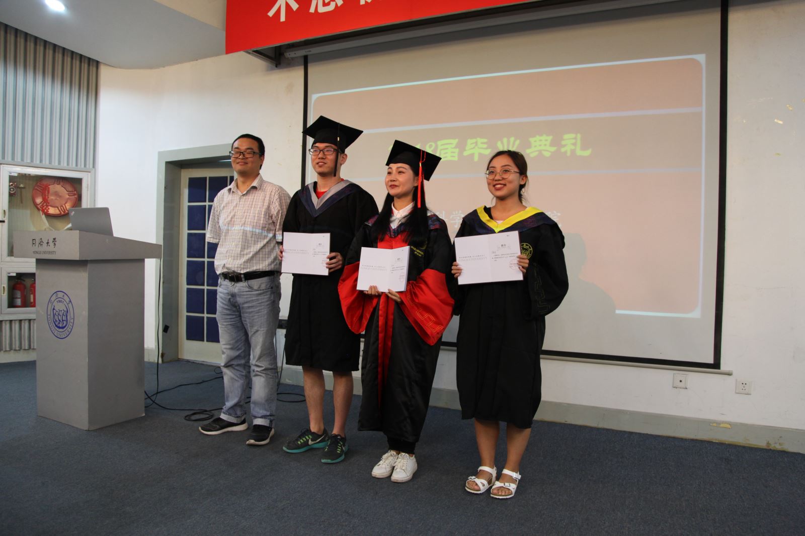 党委副书记母朝静宣读2018届全体毕业生名单并举行授证仪式。全体2017届博士、硕士、本科毕业生一一登台,从经理张弛、党委副书记(主持工作)杨晓杰和田志新、陈作锋、杨金虎等教师代表手中接过毕业证书,拨穗并合影留念。