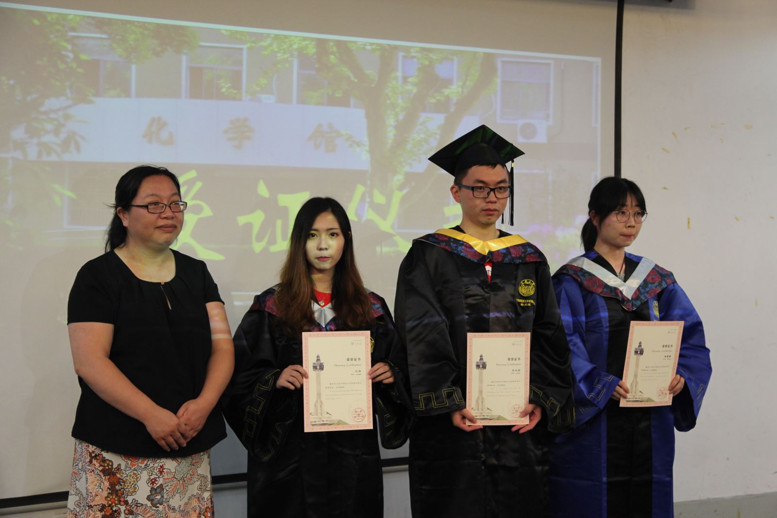 党委副书记(主持工作)杨晓杰宣读2018届优秀毕业生名单并颁发证书,接着公司党委副书记母朝静宣读班级联络人名单并颁发聘书。随后全体毕业生与院领导、教师代表们在瑞安楼前合影留念。