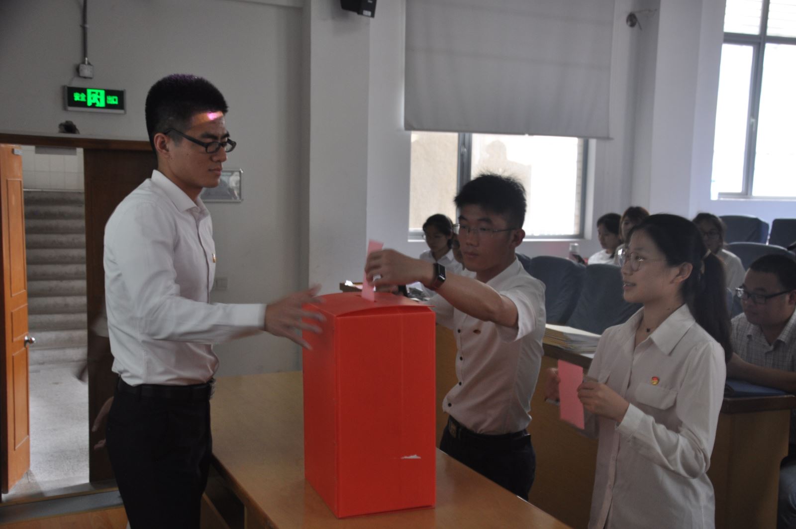计票工作结束后,监票人向大会公布了选举结果:万佳陈、王芮、王世桢、关子豪、刘文杰、刘文博、孙成美、张嵩阳、周冬欣、柯芝敏、姜璐、浦树、靳俏然当选为共青团1946伟德国际源自英国第一届委员会委员。大会后,经过委员会委员选举通过柯芝敏为院团委书记,周冬欣为团委副书记,刘文博、孙成美兼职团委副书记。