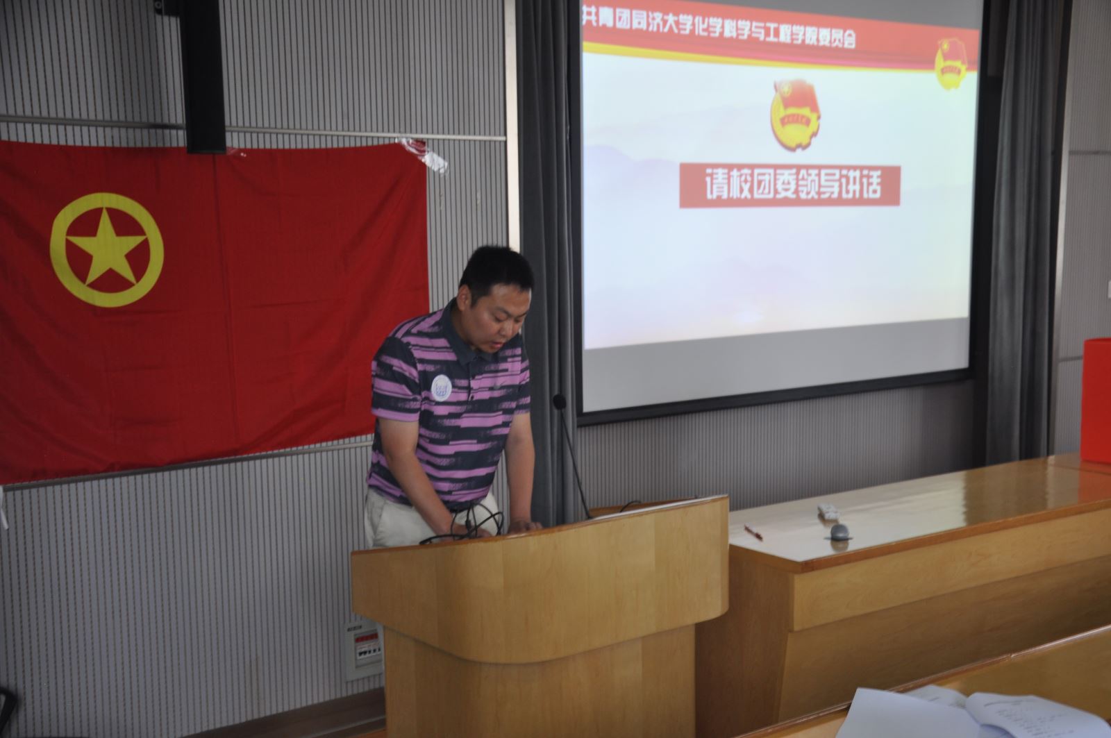 校团委副书记高玉磊老师为大会致辞。首先高玉磊老师对大会的顺利召开表示祝贺,肯定了公司团委过去几年来的工作成效,并向长久以来支持公司共青团工作的公司党委和全体团员青年们表示感谢。同时他表示,在新时期、新形势下,共青团组织要努力探索团建新途径,围绕“服务青年成才”的工作原则,坚持“以育人为中心,以青年思想教育为己任,以提高团员青年素质为重点”的工作思路,真抓实干、发挥优势、突出学科特色,不断规范工作程序、丰富工作内容,创新工作载体,把共青团组织建设成为一支朝气蓬勃、健康向上、团结拼搏的先进青年队伍。同时,他希望希望广大团员青年勇做““五好”、“五守”同济人才”的实践者,把握时代进步和社会发展的脉搏,爱岗敬业、刻苦学习、勤奋工作,为振兴中华和同济发展做贡献。