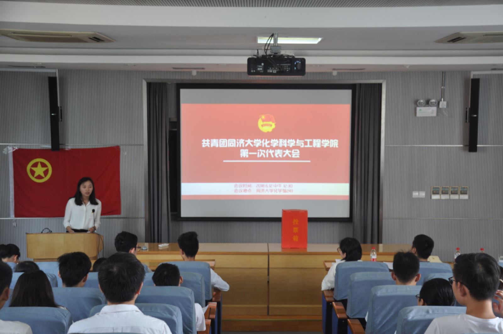 在监票组计票过程中,主持人宣读了《诚信倡议书》,呼吁青年团员应该心怀诚信,恪守承诺,从身边小事做起,共建诚信文化,共塑“诚信同济人”口碑和形象,为构建诚信社会贡献力量。