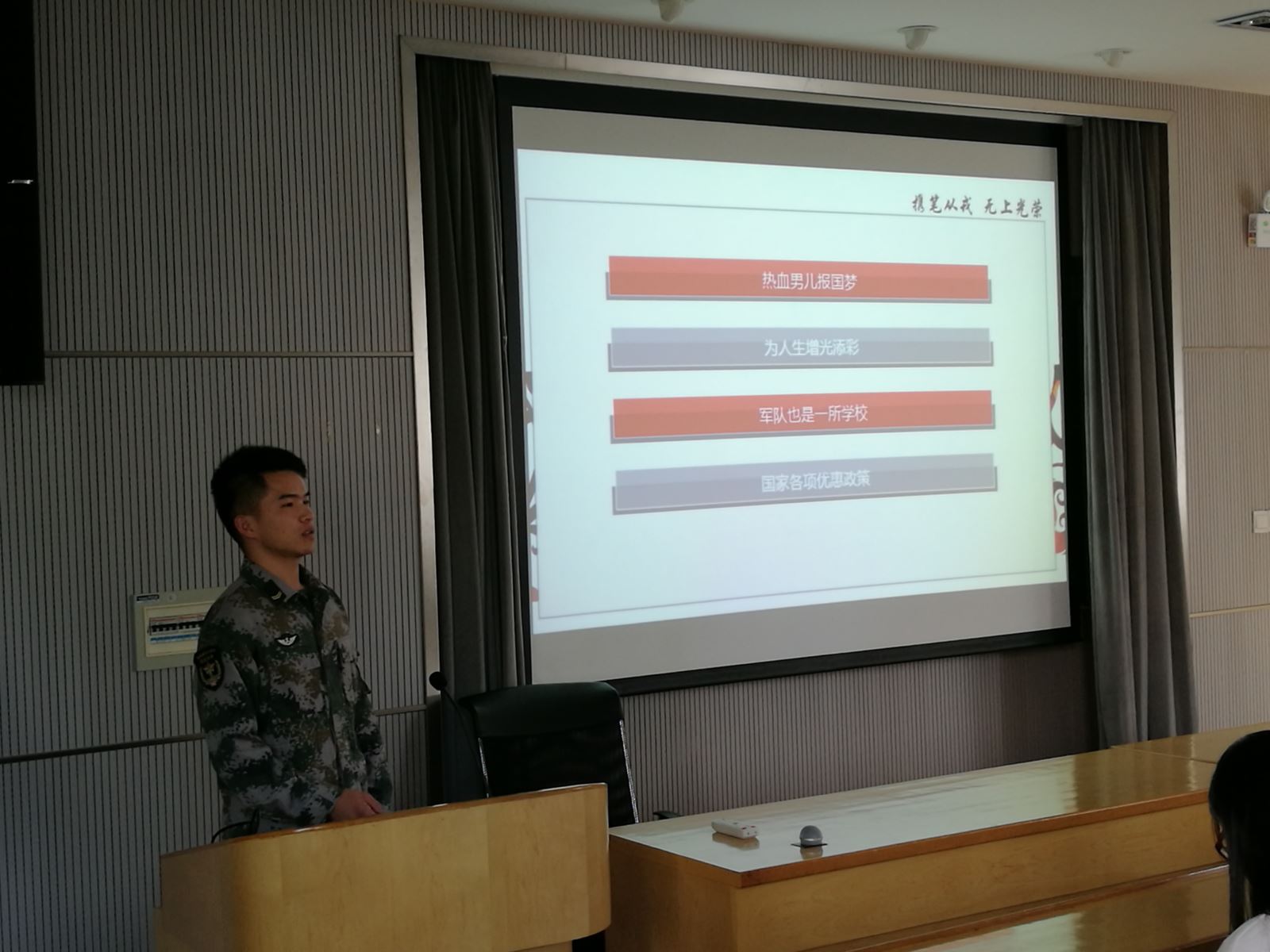 会上,袁品仕做征兵动员报告,对公司近年来征兵工作情况进行了全面介绍,着重对应征入伍同学的相关优待政策进行了解释,鼓励有志青年员工参军入伍、建功立业,同时是通过军营的历练提升自我,在未来的人生中实现自我价值。张洪源、高冲两位学长结合自己入伍的经历谈体会,与现场部分同学交流了他们感兴趣的话题。