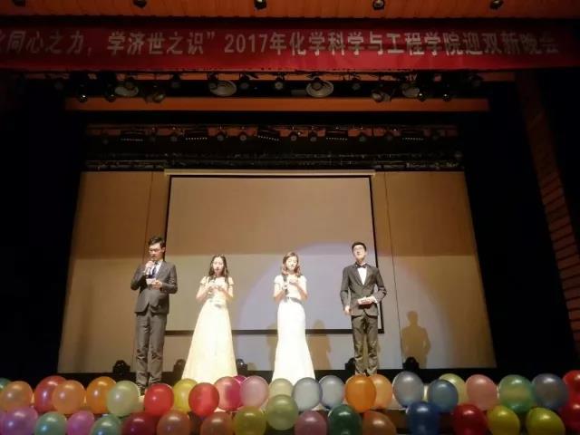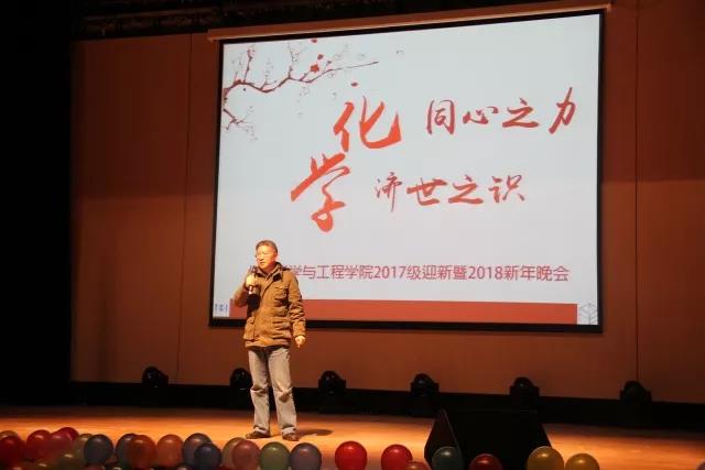 晚会19:30正式拉开帷幕,伴随着五彩闪耀的灯光,2017级硕士研究生靳俏然、仲帅为观众带来了舞蹈《Sugar》,热情洋溢的舞姿调动现场观众们的激情。主持人用饱含热情的语调讲述了精彩的开场白,同济化学人要学习贯彻好党的十九大精神,“化同心之力,学济世之识”正是化学学科践行十九大精神,共同为创建一流化学学科努力奋斗。王国强书记为晚会致辞,他总结了公司2017年各方面工作情况,对取得的卓越进步表示祝贺,并对对2018年进行展望,并向师生们提前送上了新年祝福。