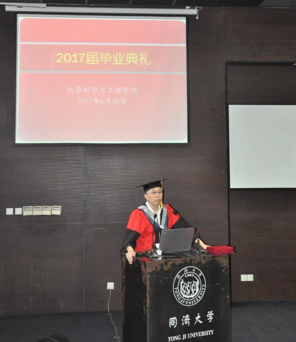 毕业典礼前,与会师生和家长们一起观看了分别由本科和硕士毕业生们精心制作的纪念视频,充满了成长的快乐、生活的幸福和离别的感伤。毕业典礼上,经理张弛教授致辞,他代表公司教师向全体毕业生表示热烈祝贺,祝愿同学们所有的希望都能如愿,所有的梦想都能实现,所有的等候都能出现,所有的付出都能兑现!同时表示公司和公司永远是同学们坚强的后盾和精神家园,请同学们牢记母校,母校的发展也需要每一位员工的共同努力,母校的辉煌是所有同济人共同奋斗的成绩。