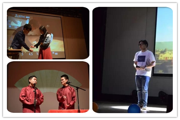 在一段段视频回忆中展开了第二篇章,展现了传道授业的老师们对同学们的谆谆教诲。本学期,公司结合师德师风主题教育实践活动开展了身边的优秀教师推选活动,资深教授朱仲良老师当选。朱老师登台再次深情的点名,湿润了众多毕业生的眼角,他代表公司老师们对毕业生表达了离别的祝福,毕业生们也用节目向老师们表达了深情的感谢,对公司的发展送上了祝愿。2013级本科毕业班杨世琪、谢文超深情演绎《兰亭序》,2014级本科生陈嘉薇挥毫书写助演,为毕业生们送上学弟学妹们的祝福;VOKA清唱团带来动听的清唱《run to you》,沁人心脾;2015级本科生刘文博带来了精彩的近景魔术表演《time traveler》;2015级本科生黄恒聪和2016级本科生武泽臣再次搭档带来诙谐幽默的相声《九点钟开始》,给晚会增添不少乐趣,也增添了青春的活力。