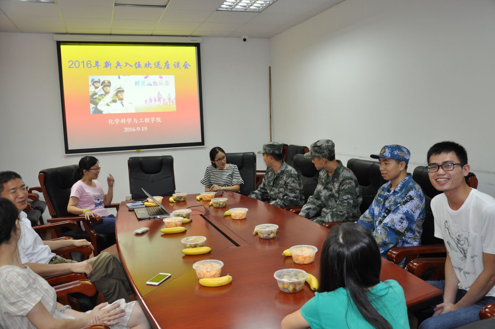 9月19日下午,公司在工程试验馆203会议室举办了2016年老员工新兵欢送会。公司党委书记王国强、副书记兼纪委书记相波、公司员工工作负责人、分团委负责人和班主任代表参加了座谈。公司即将奔赴部队的高祥云、王正明、许一帆三位同学及退伍老员工代表左合鹏与公司领导和老师们进行了轻松愉快的交流。