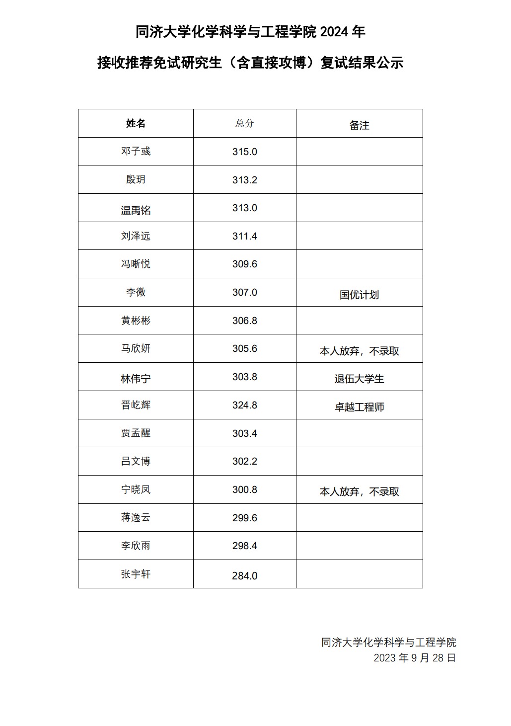 2024年接收推荐免试研究生(含直接攻博)复试结果公示