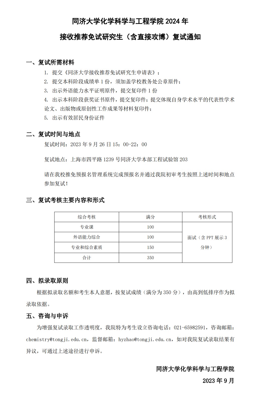 2024年接收推荐免试研究生(含直接攻博)复试通知