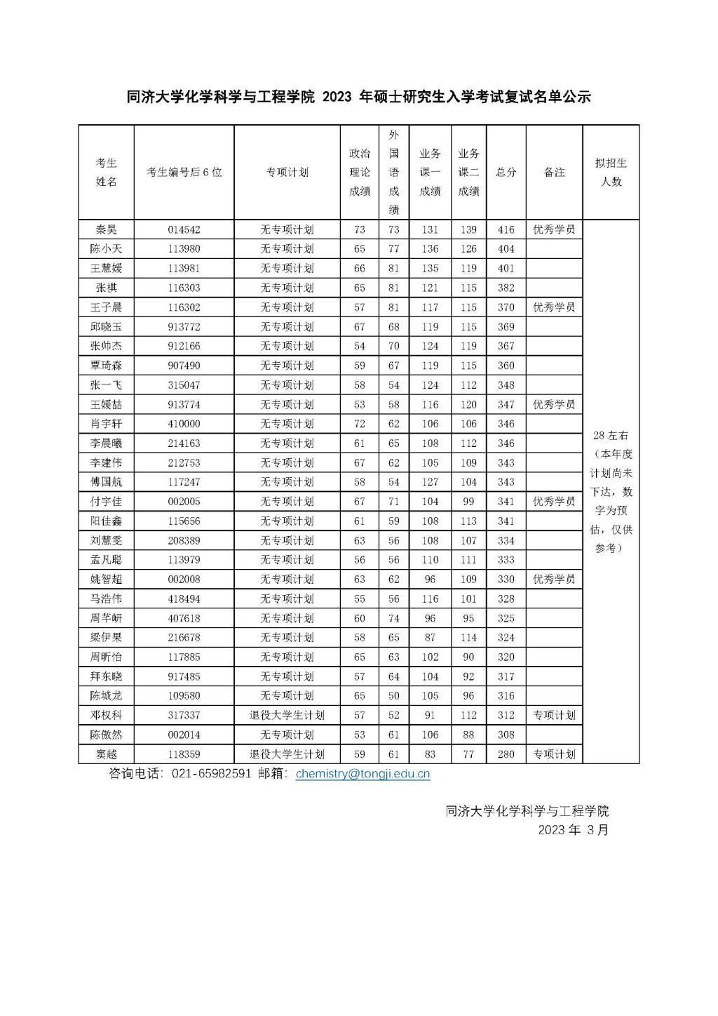 1946伟德国际源自英国2023年硕士研究生入学考试复试名单公示