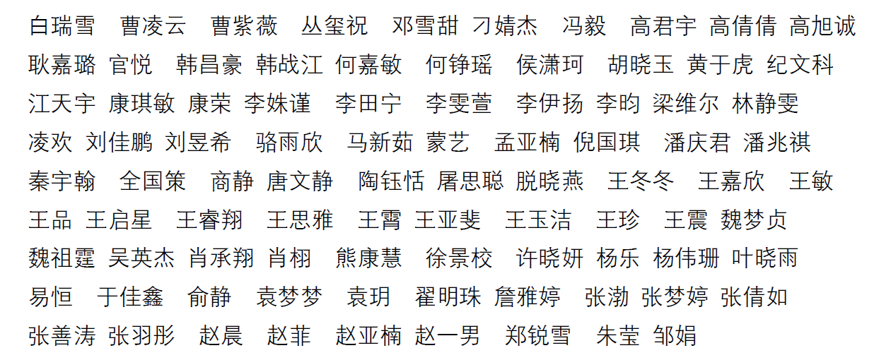 一、根据综合材料评价,经公司招生领导小组审核通过,确定第一批入选名单107名(按姓氏拼音排序):
